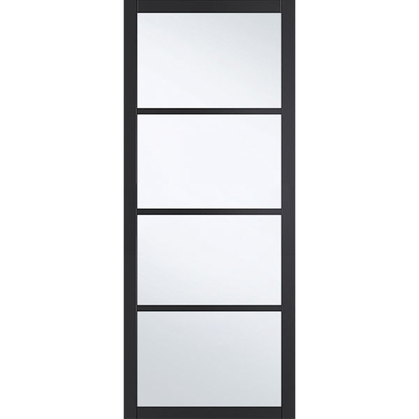 The Ailesbury Black 4 Panel Opaque Glass 44mm Door is crafted with a beautiful and smooth black finish, adding a touch of elegance to your home. Designed for stability and durability, each door is coated with a special matt finish that enhances its lifespan, ensuring long-term quality and performance. Available in 6'8" x 2'10", 6'8" x 2'8", 6'6" x 2'9", 6'6" x 2'6", 6'6" x 2'4".