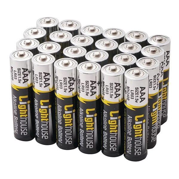 The Lighthouse AAA Battery Pack (24 Pack) is designed for performance, making it ideal for high-drain devices such as remote controls, toys, wireless accessories, torches, and more. Alkaline batteries last longer when used with higher current devices and can, in some cases, outperform zinc-carbon products by up to 6 times, they also have less risk of leaking.