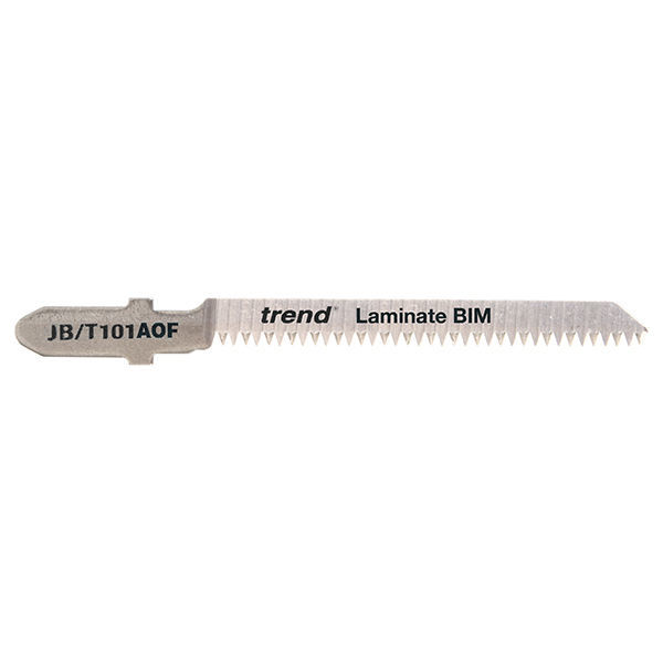 Trend Bi-Metal Laminate Jigsaw Blade 76mm (5 Pack) High-performance, trade-rated jigsaw blades that deliver a fast, smooth cutting action in wood-based and laminated materials. Ideal for making curved and intricate cuts in plywood, compact laminate worktops and laminate flooring.