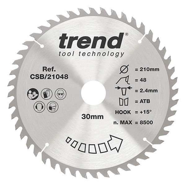 Trend Craft Combination Saw Blade 210mm Diameter x 48 Teeth x 30mm Bore x 2.4mm Kerf is a range of tungsten carbide tipped blades for wood and wood-based materials. For use in circular, plunge, and table saws, and available in a range of finishes. Ideal for ripping and trimming softwood, hardwood, plywood, MDF, and hardboard.