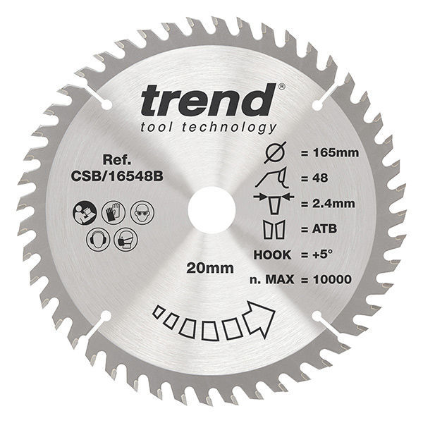Trend Craft Trimming Crosscut Saw blade 165mm Diameter x 48 Teeth x 20mm Bore x 2.2mm Kerf