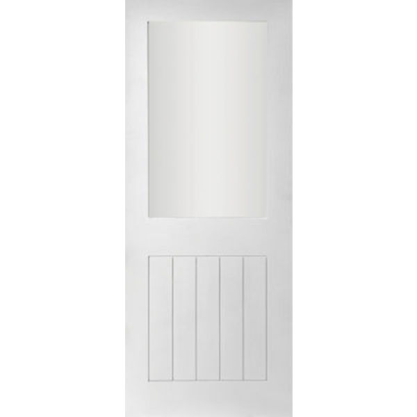 Upgrade interiors with theWhite Primed Nevada Half Glass Door featuring frosted printed glass with vertical clear lines. This 42 mm engineered door blends style and function—ready for finishing to suit any décor. Available in sizes 6'6"x2'6", 6'6"x2'9", 6'8"x2'10", 6'8"x2'8".